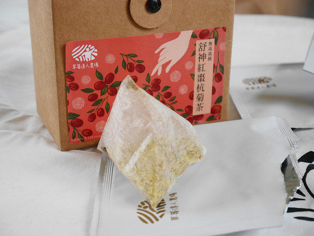 藉由透過氮氣粉粹的杭菊,反而可以完全品嚐到其中的營養素和香氣,而且經過特殊工法,將杭菊與紅棗做完美結合後,置入三角形的立體茶包。