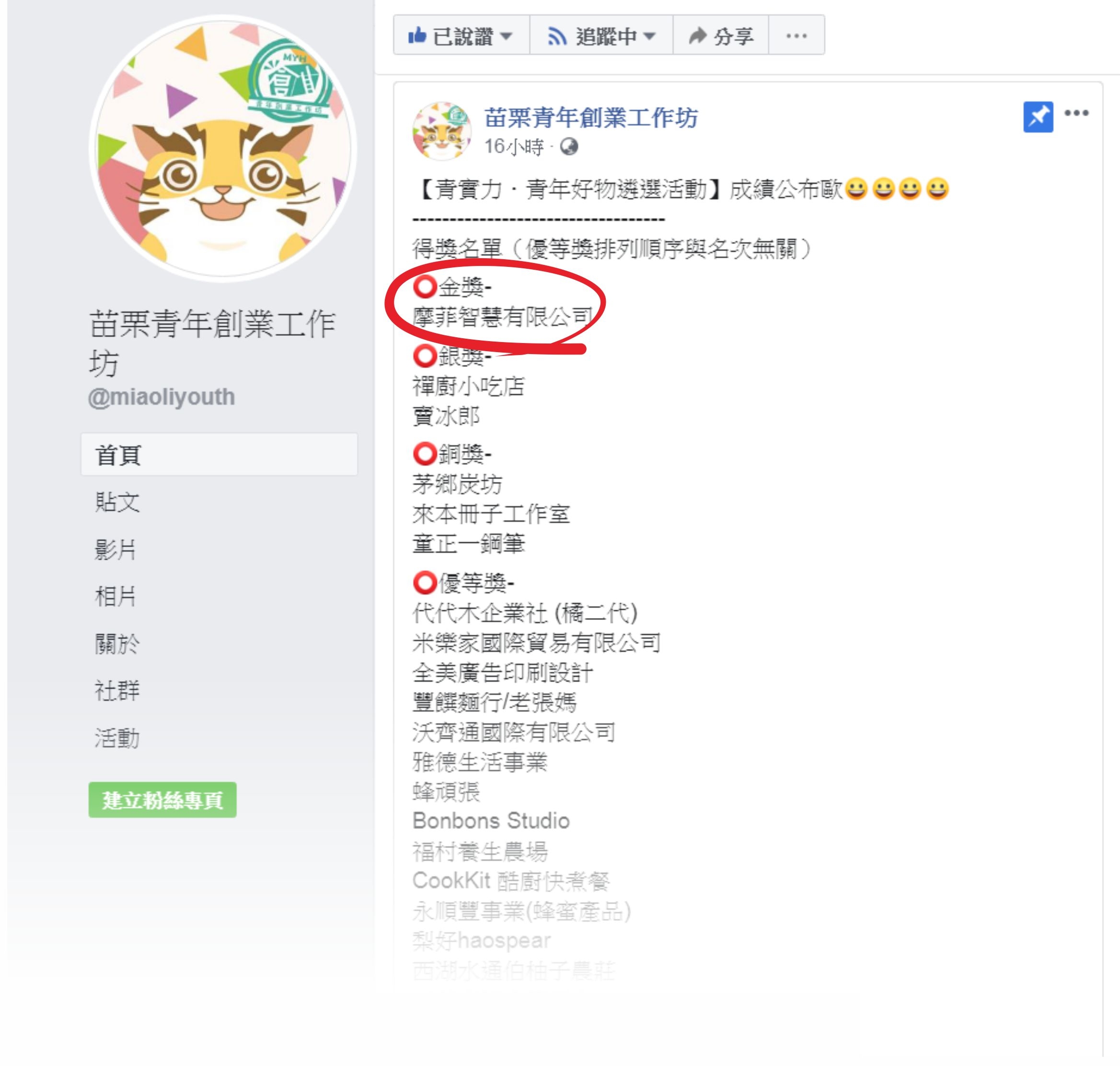 感謝每個把票投給貓裏等路禮盒的朋友們,我們在這次苗栗青年選物中獲得了金獎,以後在苗栗重點hotel看得到我們禮盒囉!