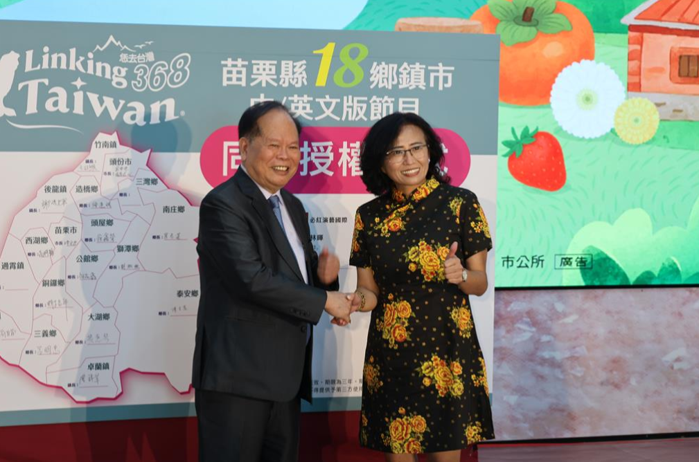 由必紅演藝總裁林暉博士率領團隊製作的國際雙語節目《Linking 368 Taiwan 恁去台灣》,已完成苗栗縣18鄉鎮市觀光影片中英文版拍攝與播出,10日上午,林暉正式授權苗栗縣政府及18的鄉鎮市公所可以在相關領域使用播放,這隻系列影本全面展現苗栗自然景觀、人文風貌與特色產業,並透過國際化視角,將台灣在地美好推向全球舞台。