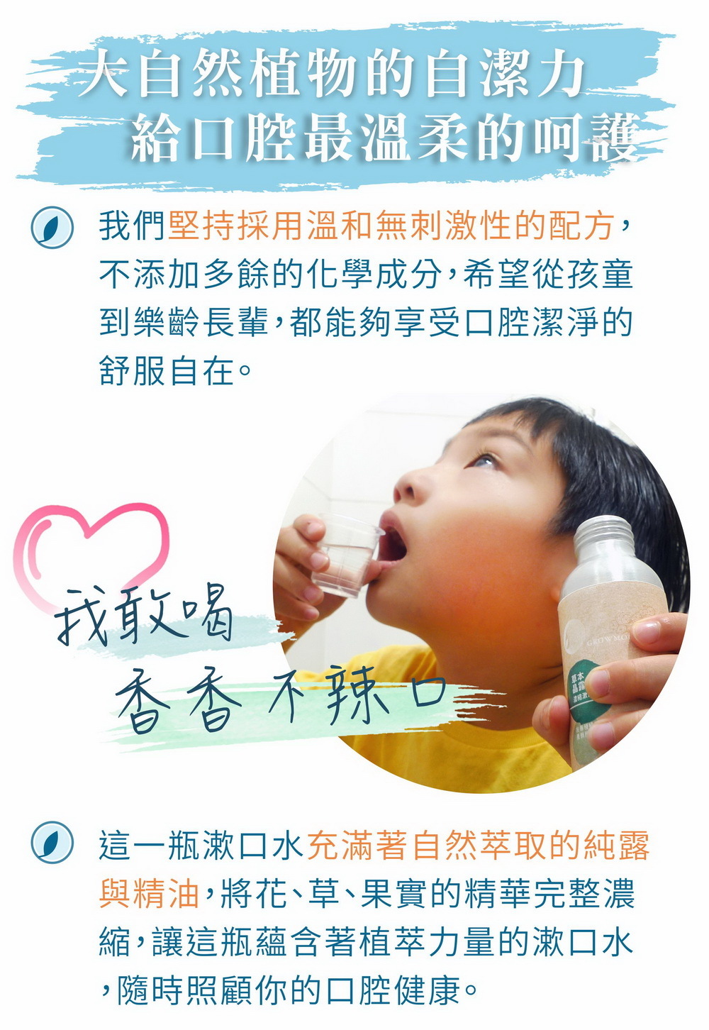 -- 口感清新溫和,完全取代市面上化學漱口水,小朋友也容易入口