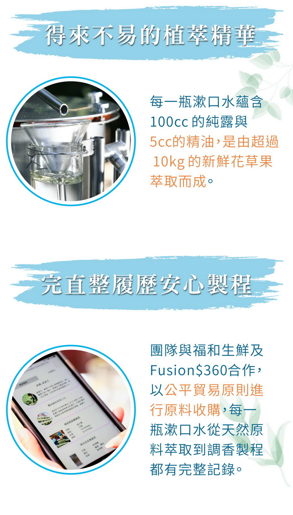 -- 七種天然柑橘及有機香草 萃取出的純露與精油