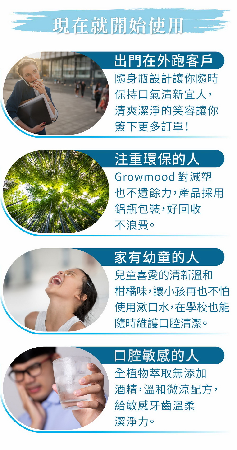 -- 芳療師與牙醫師研發調配出 5 倍濃縮 100% 純天然的濃縮漱口水和潔口噴霧
