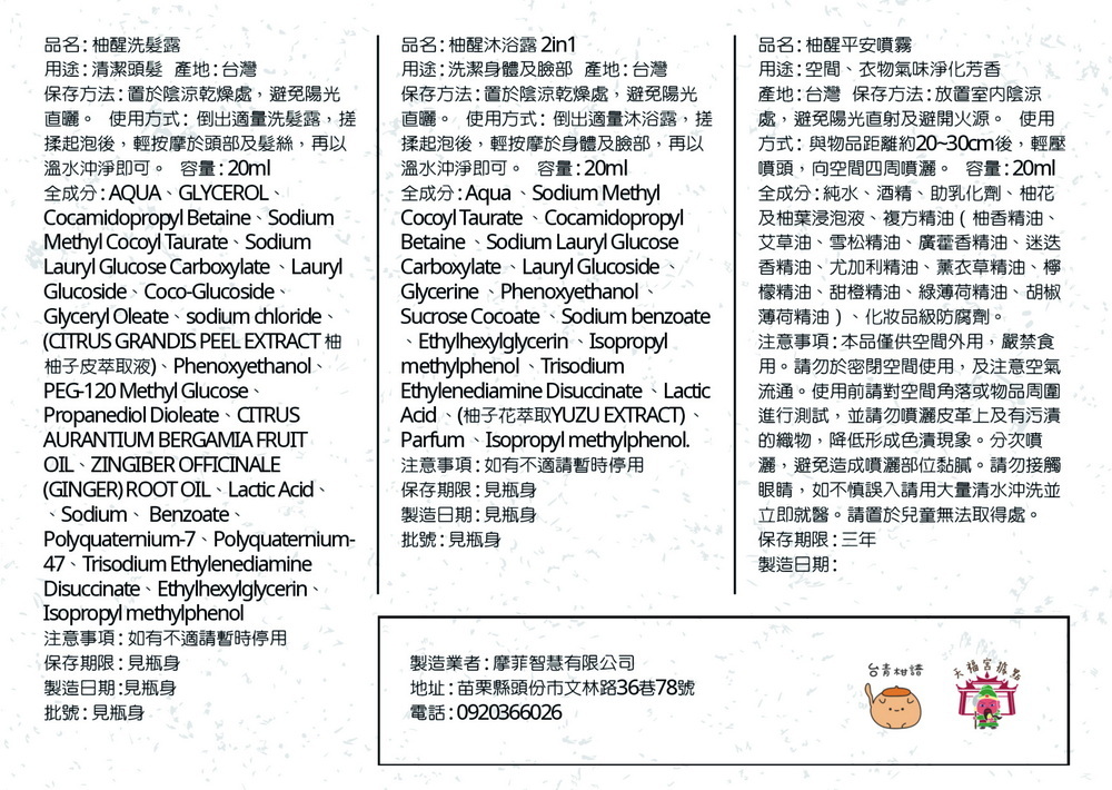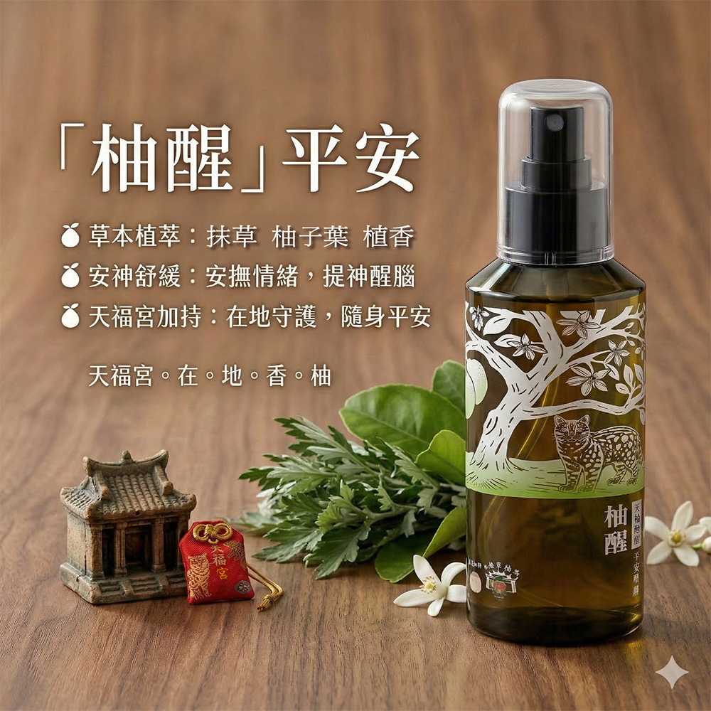 我們把這段記憶留住,以抹草作為「平安」的主題,搭配柚子葉的清亮與收斂,做成一瓶你隨手噴一下,就能回到「安心」的空間噴霧。