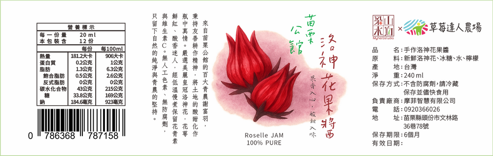 苗栗公館,每到秋冬,這裡的山頭便被一朵朵洛神花染成美麗的艷紅。洛神花又被稱為「植物界的紅寶石」,為了保留這份大自然的禮讚,我們堅持純人工採摘、一顆顆手工去籽,將這份費工的美味,轉化成純手工熬煮的洛神花醬!