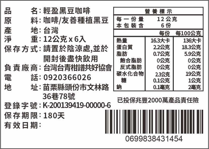 【梁山水泊】輕盈黑豆咖啡,產銷履歷,青銀共農,客庄特色農產 (國際風味評鑑2星)