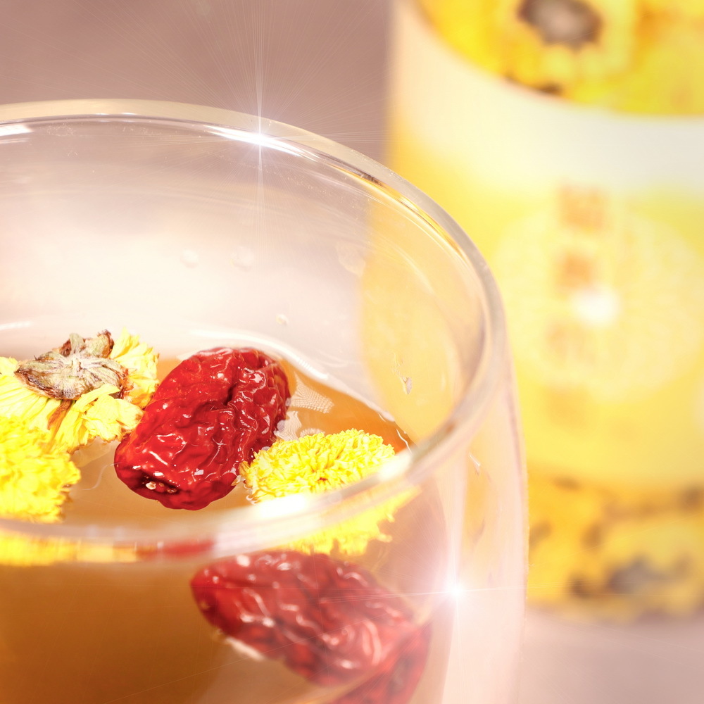 嚴選來自台灣公館紅棗安心紅棗和全台唯一的產銷履歷公館無毒杭菊,每天在一壺茶中加入幾朵杭菊+幾顆紅棗,沖入200-250cc 熱水,每杯都萃取到紅棗的鮮甜和杭菊好滋味。『 杭菊+紅棗 』,氣色兼顧,甘甜滋潤、香氣十足,長期喝,慢活氣質從內到外,輕鬆養出美麗蘋果肌,追劇更無後顧之憂!